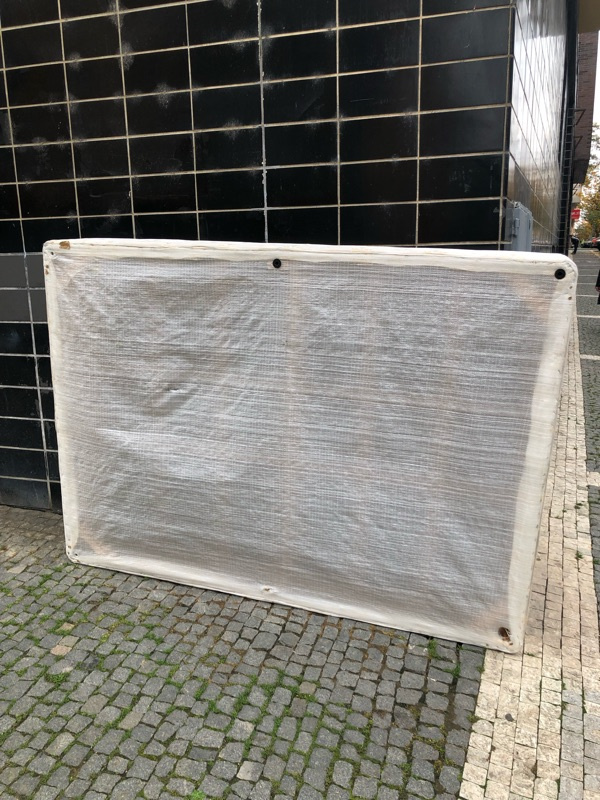 Vyhozená matrace s postele je na chodníku.