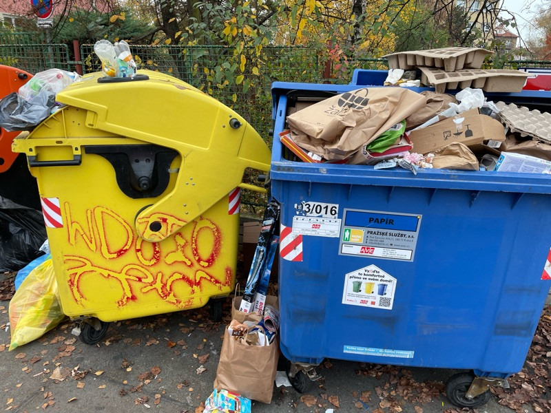 Dobrý den, děkujeme za Váš podnět. U tříděných nádob poklidí firma AVE při pravidelném svozu. Pavel, Čistá Trojka