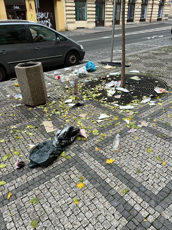 Nepořádek kolem odpadkového koše