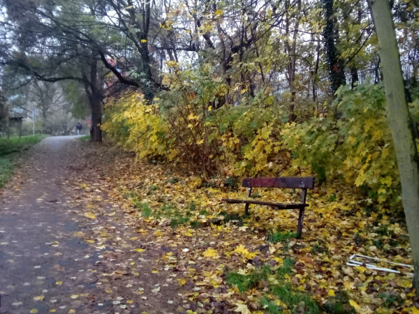 zajímalo by mě, k čemu je v aplikaci GPS poloha, když pokaždé chcete upřesnit. je to cca 30 metrů od bazénu Pražačka. od bazénu vede do parku několik chodníků, toto je druhý zleva. vede z kopce. je tam jediná lavička. na půl cesty mezi bazénem a dětským hřištěm
