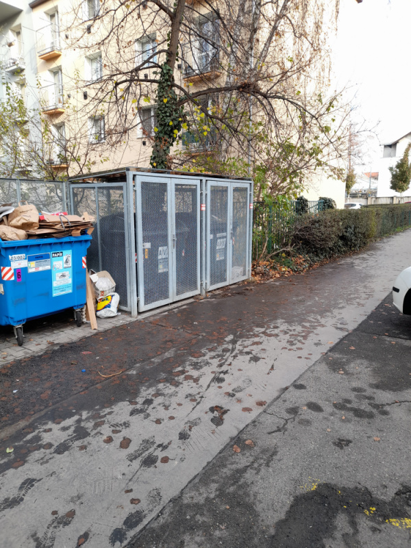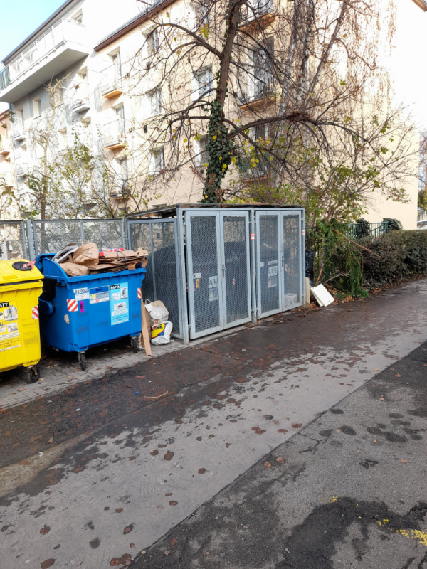 Rozházené odpadky kolem kontejneru na komunální odpad