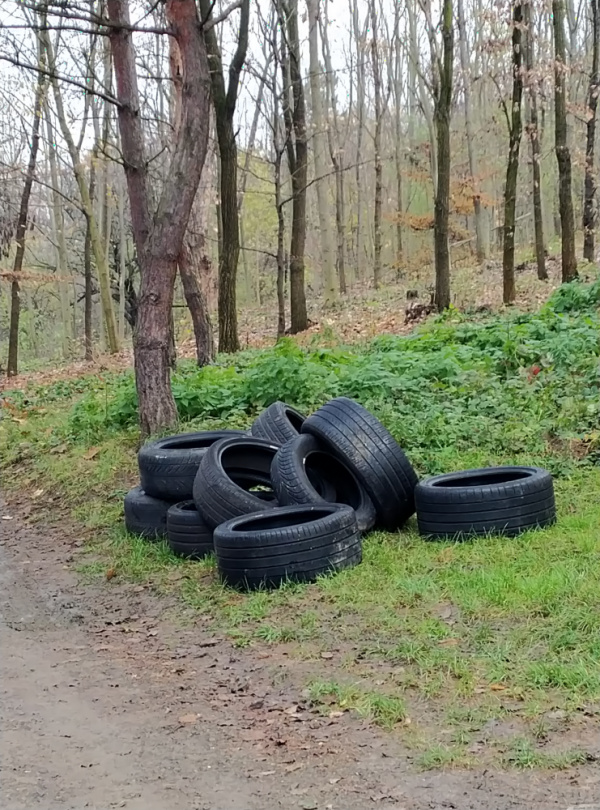 Na místo se pokusíme dostat a pneu odvézt. I my za ně musíme zaplatit na sběrném dvoře:-(