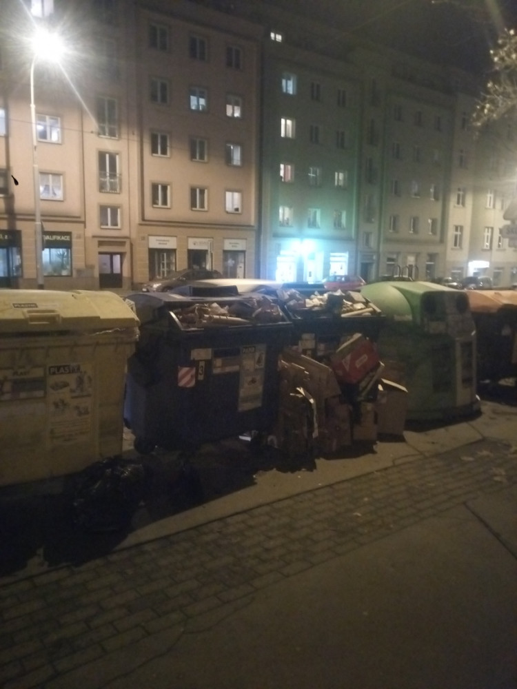 nepořádek u popelnic na třídění odpad hafo papíru který je i mimo kontejner kontejnery na papír přetékají chtělo by to dát 8 kontejnery na třídění odpad i do Biskupcova ulice jinak se toto bude fůr dít opakovaně je to tady stali problém kdyby se daly kontejnery na rohu kde končí vozovna kříženi Biskupcova a za žižkovskou vozovnou tak by to mohlo pomoc!
