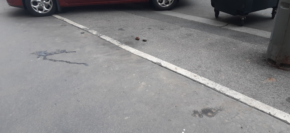 chodník znečištěný od psů, Jeseniova 119, 121. prosím o úklid. je to každý den, ale dnes obzvláště výživné. děkuji.