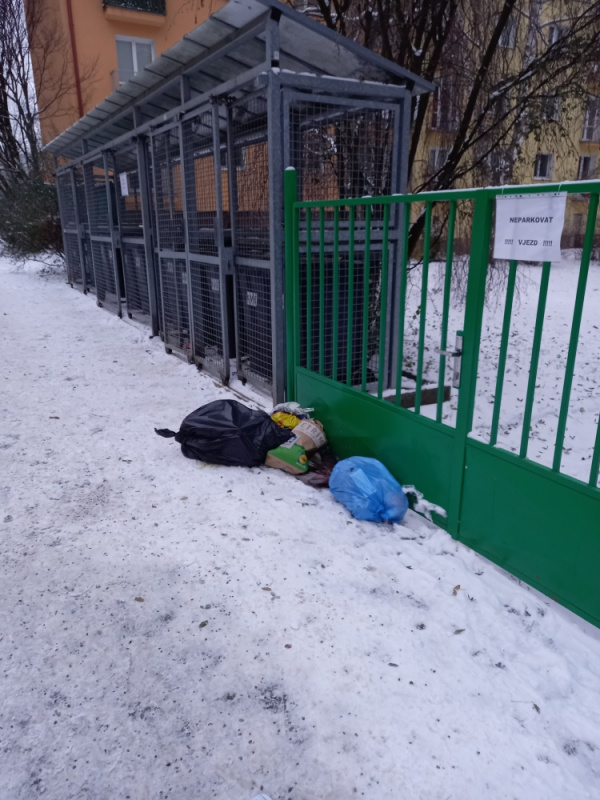 opakovaně po odjezdu popelaru pravděpodobně pytle prebyvajici v popelniciich pohozeny na zemi.