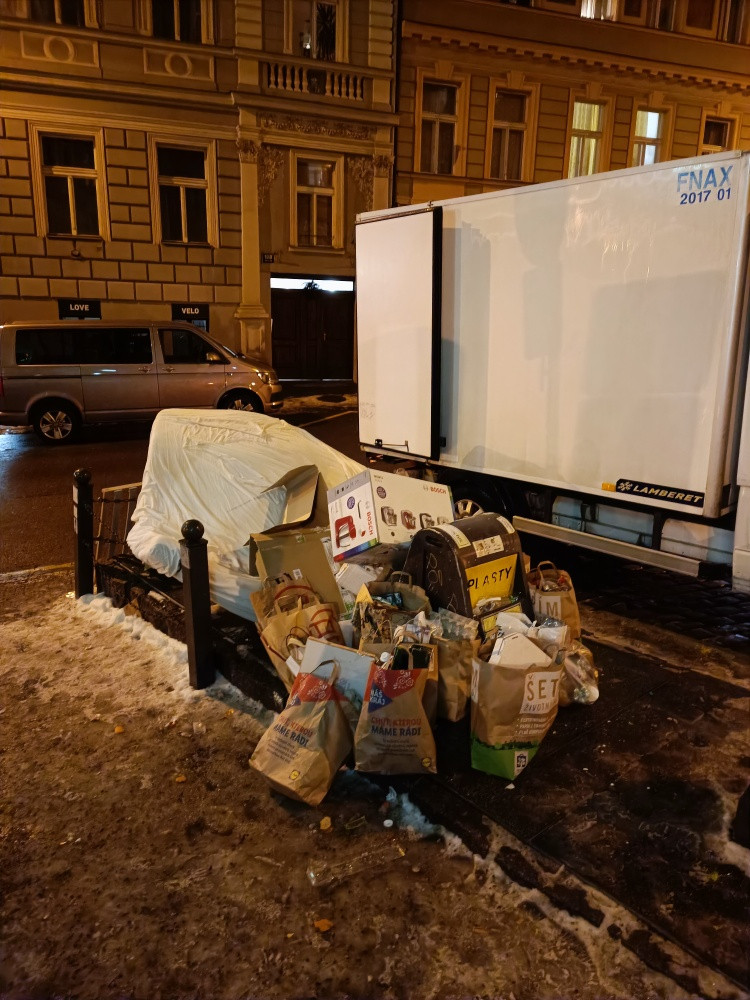 děkujeme za Váš podnět. Předáno firmě AVE. Poklidí při pravidelném svozu.