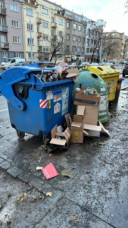 děkujeme za Váš podnět. Kontejnery poklidí a vyveze firma AVE v pravidelném svozovém termínu!