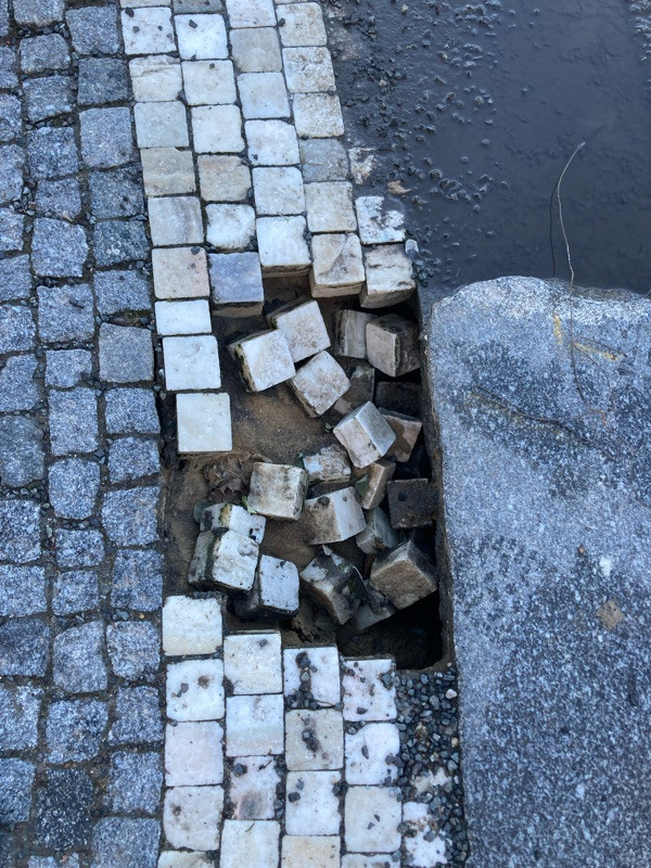 Dira v chodniku.