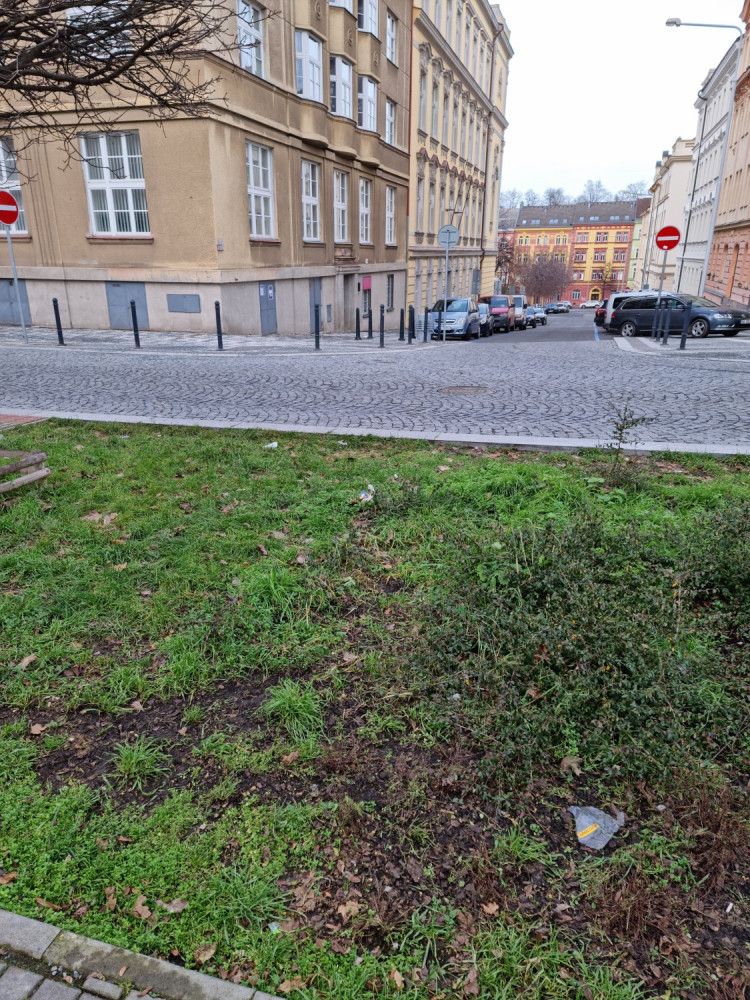 Nepořádek na trávníku a kolem něj