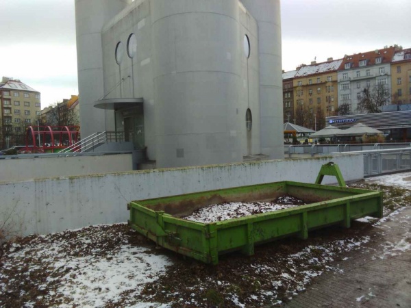 Trvale umístěný kontejner na odpadky - viz hlášení1469 z října 2016. Je u TV věže stále.
