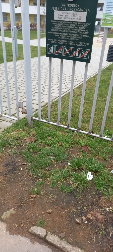 Psí výkaly u plotu dětského hřiště naproti školce. Prosím o úklid. Děkuji