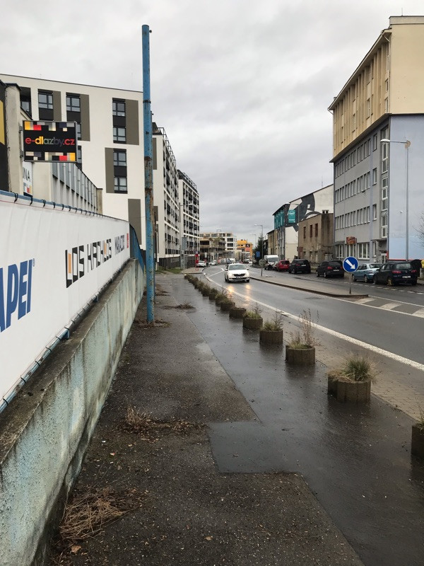 Vámi uvedené chodníky jsou v soukromém vlastnictví firmy Metrostav a.s. Vozovka je ve vlastnictví Hl. m. Prahy. Praha 3 zde nemá žádné pravomoci.