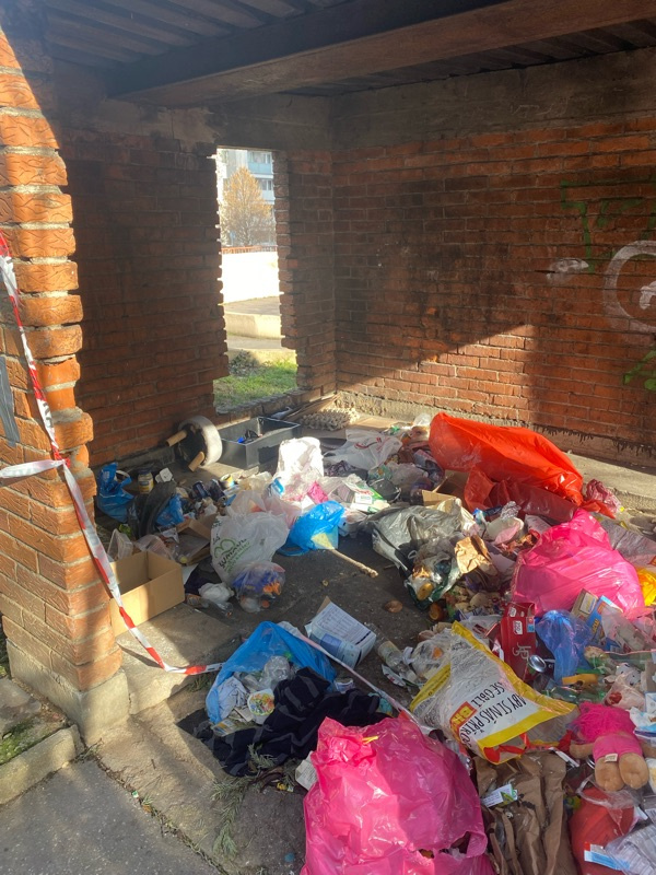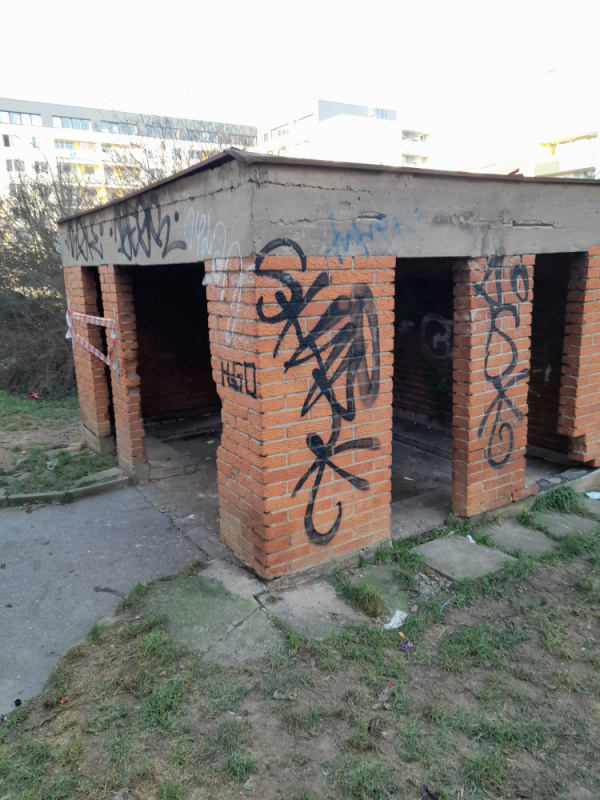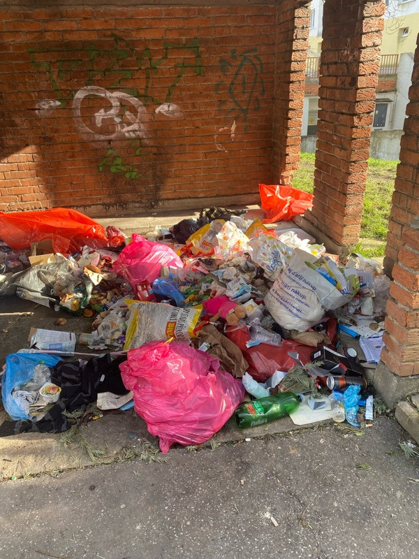 Poprosím odvést veliký nepořádek viz foto. O odstranění přístřešku na kontejnery jednám s odborem životního prostředí P3.