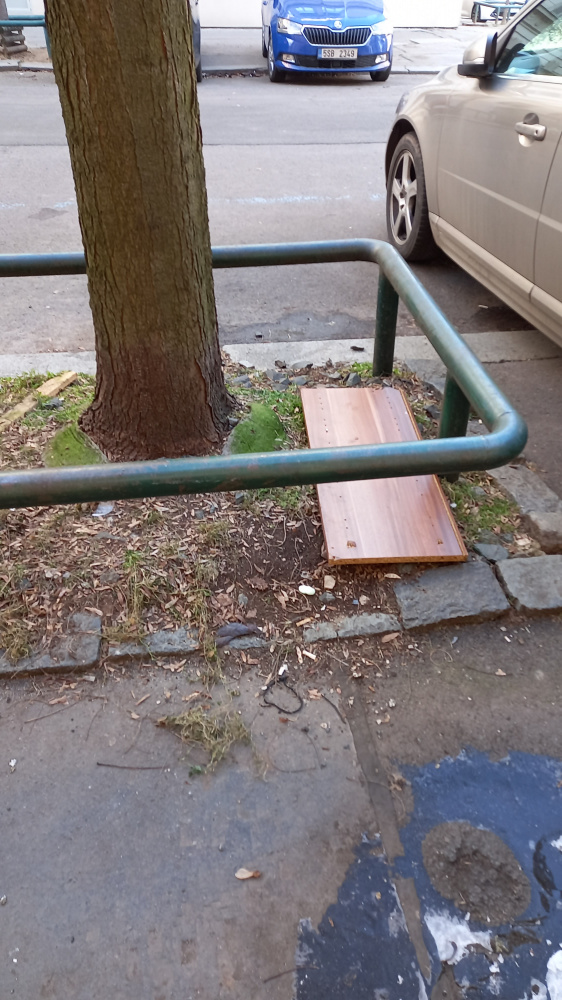 Prosím odklidit desku z rabátka v ulici Jagellonská.