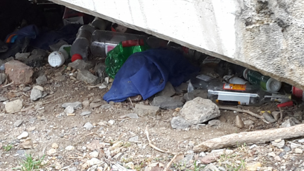děkujeme za Váš podnět. Na uvedeném místě jsme provedli kontrolu. Jedná se o věci bezdomovců, kteří byly na uvedeném místě. Pozemky jsou českých drah. Předáváme.