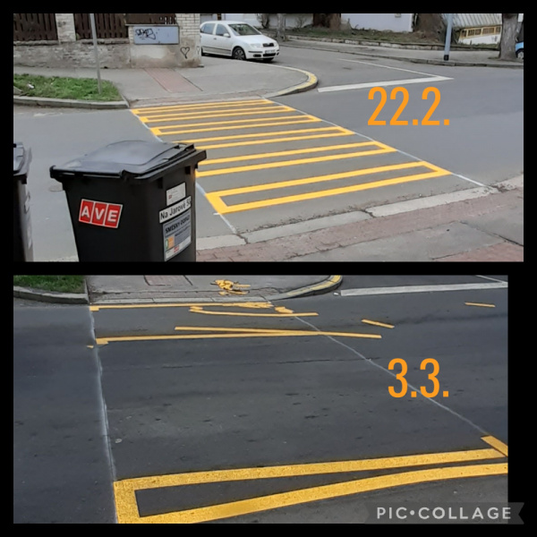 Dobrý den, na chvilku jsme se radovali z nového "provizorního" přechodu prochodce u nás v ulici, který navazuje do ulice Na Chmelnici, kam vodíme děti do MŠ. Radost však netrvala příliš dlouho a auta tak po týdnu toto přechodové místo opět neakceptují. Prosíme tímto o nápravu/sklizení. S pozdravem, L. Vacková