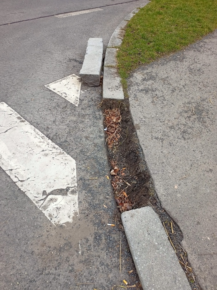 Uvolněný blok obrubníku.