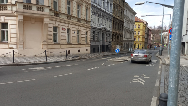 Vyvrácený sloupek Rokycanova křižovatka.