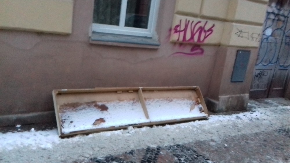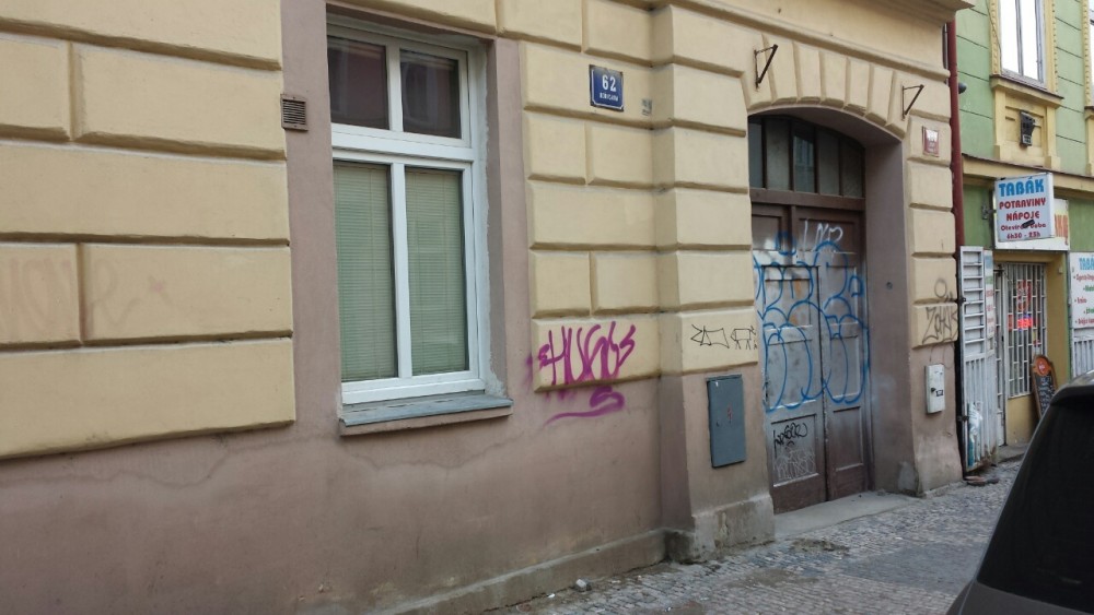 PLUS Bořivojova 62 - o dům opřena deska, opět již nějaký čas, viz foto.