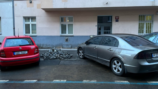 Dobrý večer, po opravě havárie zůstala na chodníku hromada dlažebních kostek a je zde již několikátým dnem.