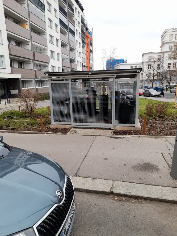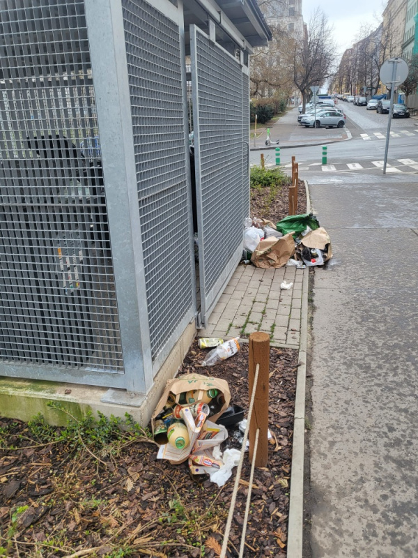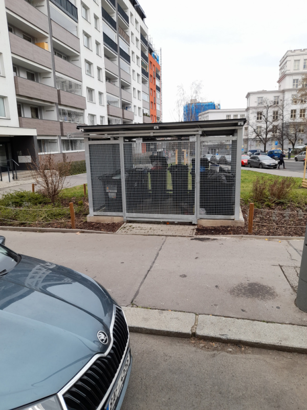 nepořádek kolem kleci na kontejnery, prosím uklidit rychle, než to rozpoutá vítr. děkuji