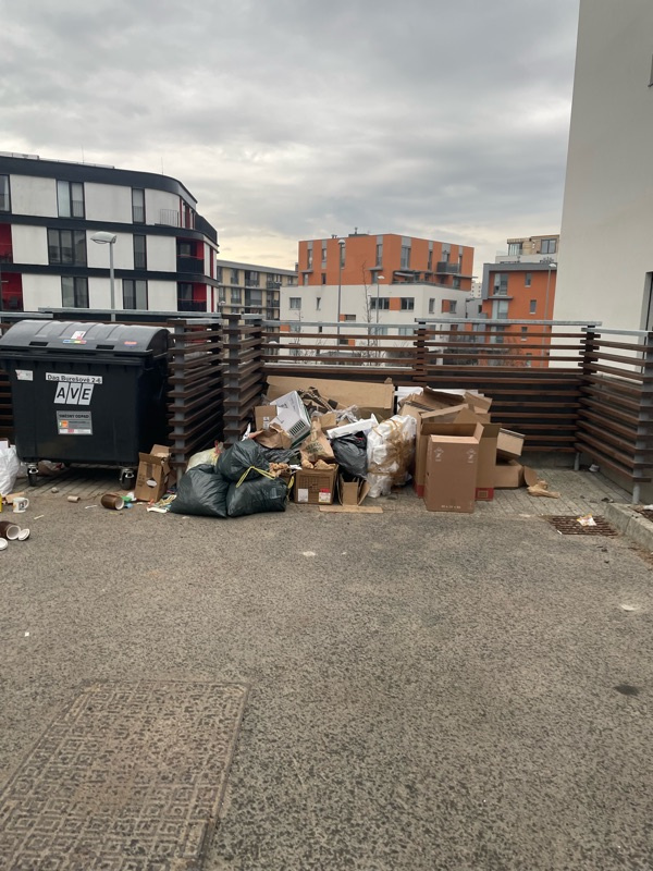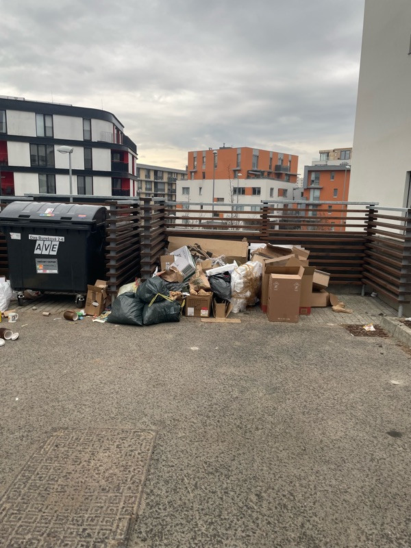 Nekdo zacal vytvaret cernou skladku vedle kontejneru. Nachazi se to zde jiz cca 10 dni a postupne nabira na objemu.
