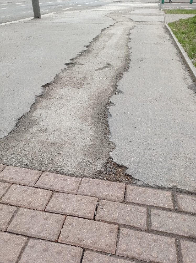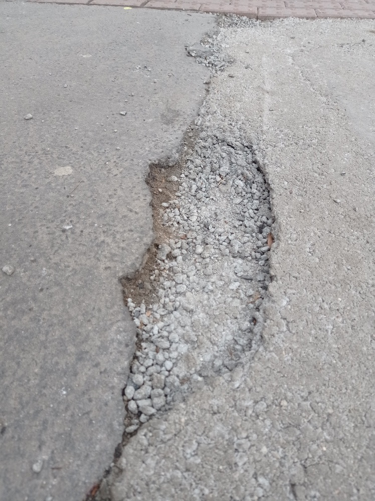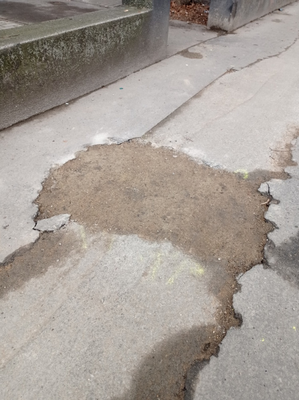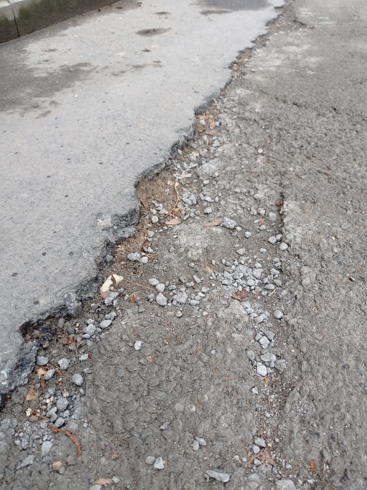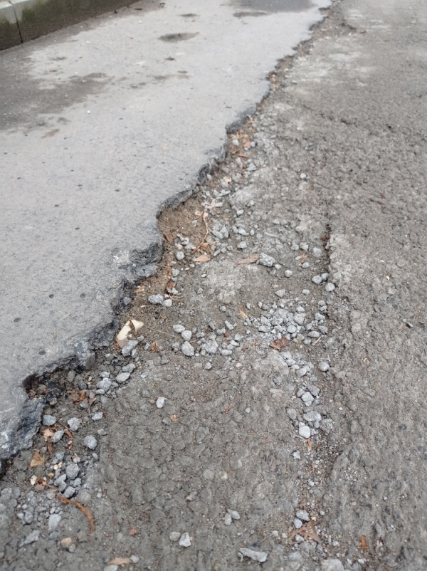 Po zakopání kabelů špatně vyspraveny chodník - úsek cca 400 m, už teď se drolí.