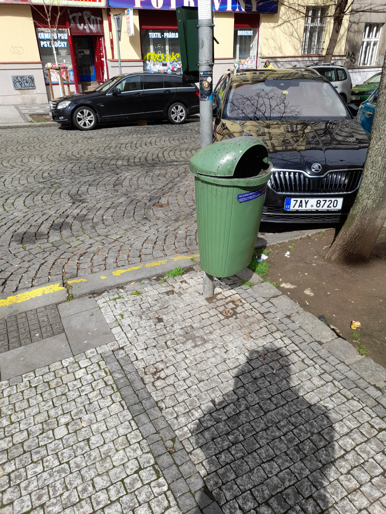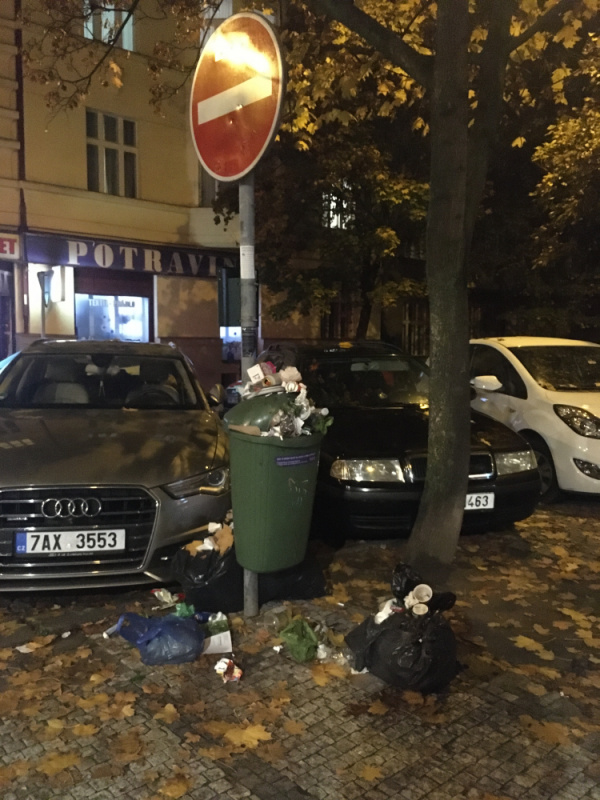 Přeplněný koš každou st-so (dny, kdy se konají trhy na Jiřího z Poděbrad)