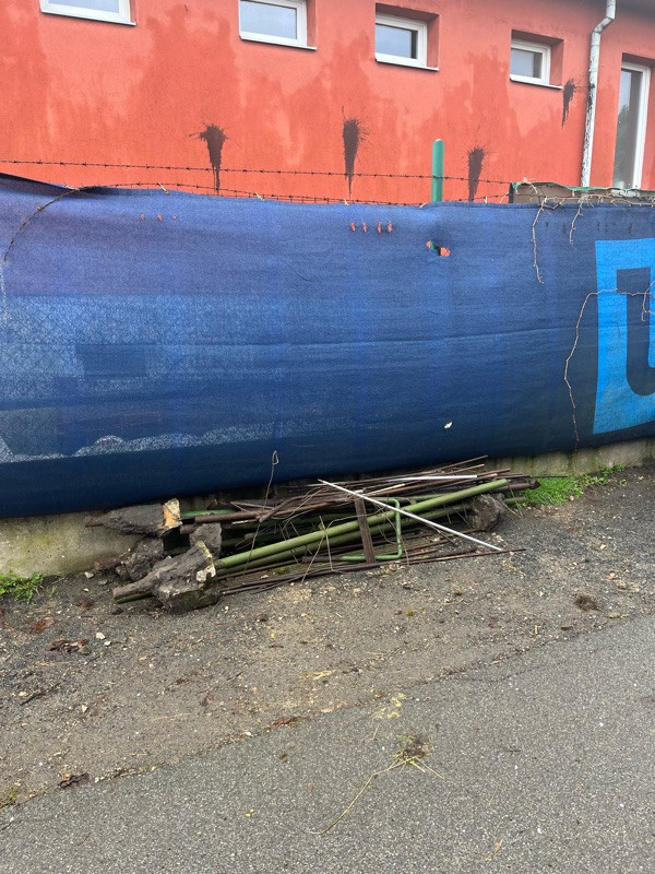 děkujeme za Váš podnět. Pozemek patří Tělovýchovná jednota Spoje Praha, Na Balkáně 450/25, Vysočany, 13000 Praha 3. Zkusíme je oslovit aby skládku odklidili. jedná se o tyče včetně těžkých betonů.
