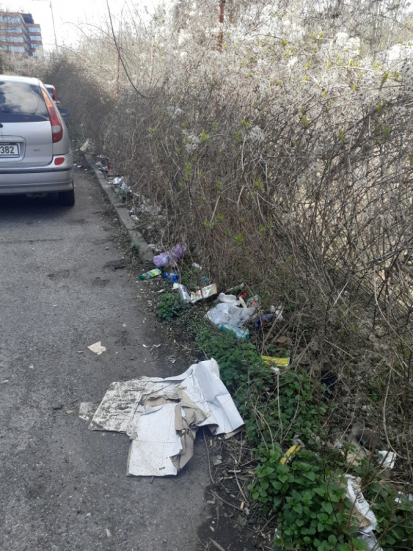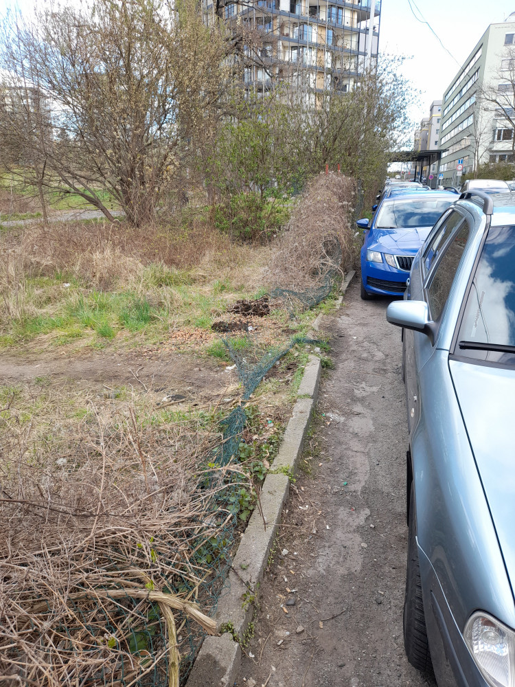 Roztržený pytel s odpadky... Úsek cca 50 metrů na hranici parku.