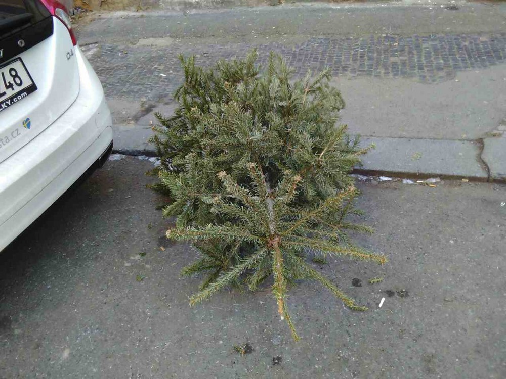 PLUS Vánoční stromek u lampy před vedlejším domem (č. 63)