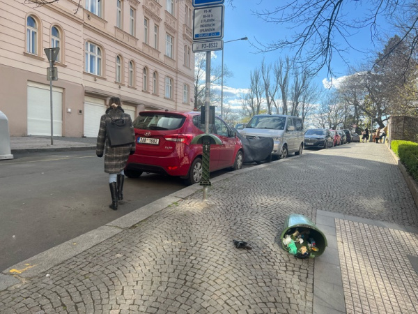 V 5ti dnech znovu a znovu poškozeny odpadní kos a odpadky všude po ulici