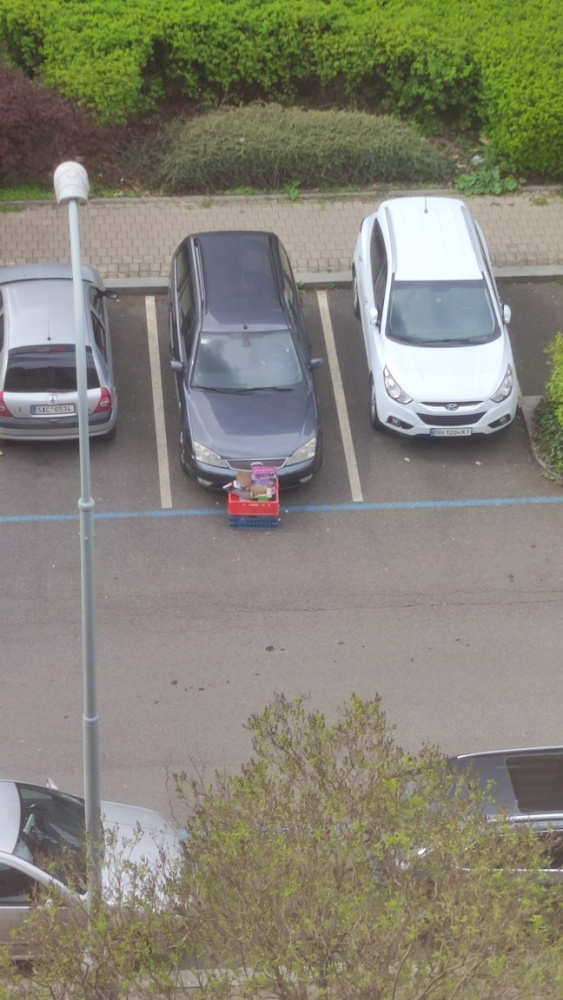 Takto to auto stojí již týden a před vozem leží bedny aby nebyla čitelná SPZ...