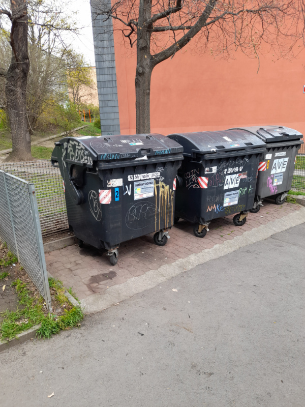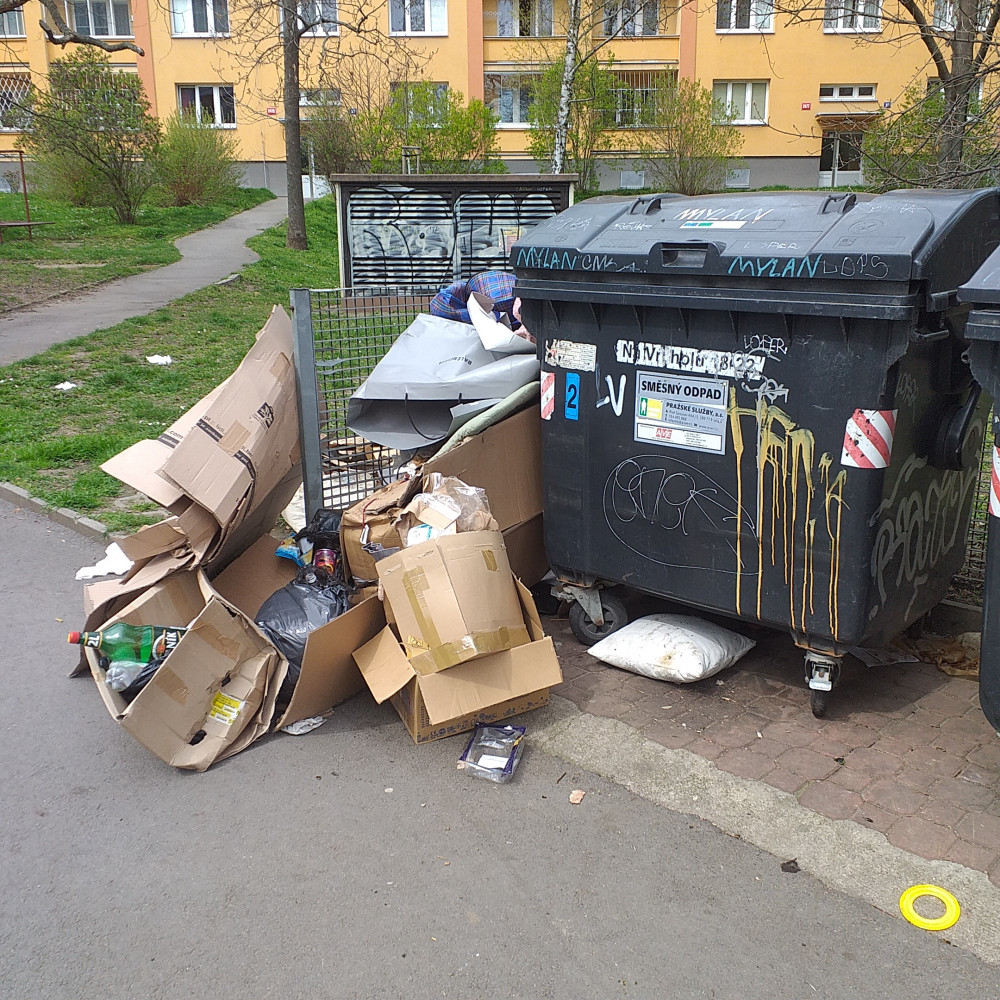obracim se vas s prosbou o odstraneni neporadku u popelnic na adrese K Lucinam 17.
