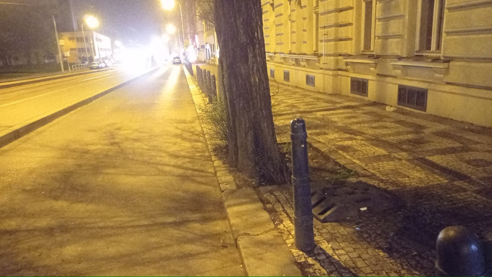 V ulici Seifertova se u lampy 300 579 nachází zapomenutý podstavec po přenosné DZ.