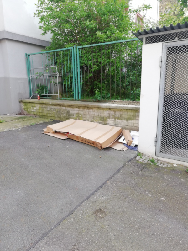 Krabice a dalsi odpadky na chodniku. Predem diky za vyřízení