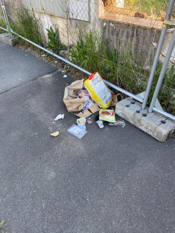 Rozhazený odpad na chodníku