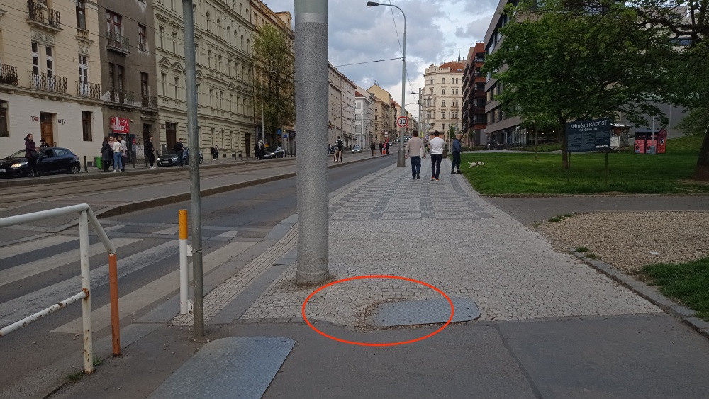 V ulici Seifertova se u tramvajové zastávky Viktoria Žižkov blízko lampy 300 670 začíná propadat dlažba chodníku i přilehlý poklop, přičemž po deštích se zde dlouho drží louže.