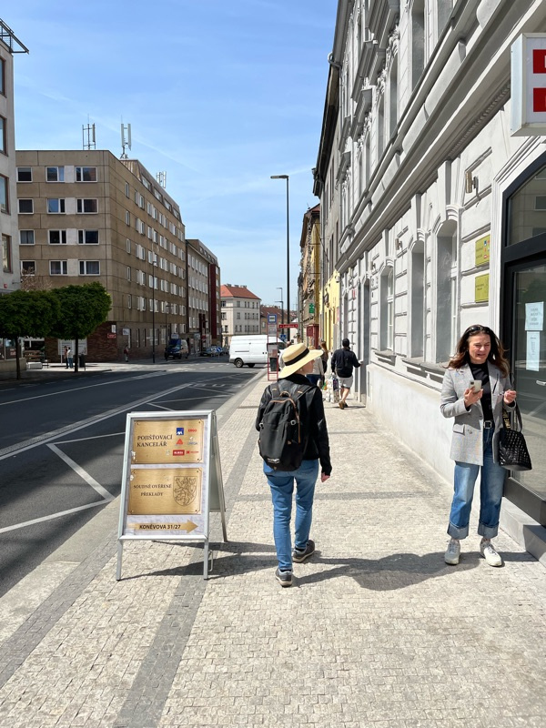 každý den se s kočárkem na zastávce Lukášova ve směru centrum musím složitě vyhýbat ceduli pojišťovací kanceláře, která zabírá bez přehánění třetinu chodníku. Obzvláště při větším množství osob na zastávce nebo dvou za sebou přijíždějících autobusech je to opravdu nepříjemné a cedule narušuje využití veřejného prostoru pro ostatní osoby.