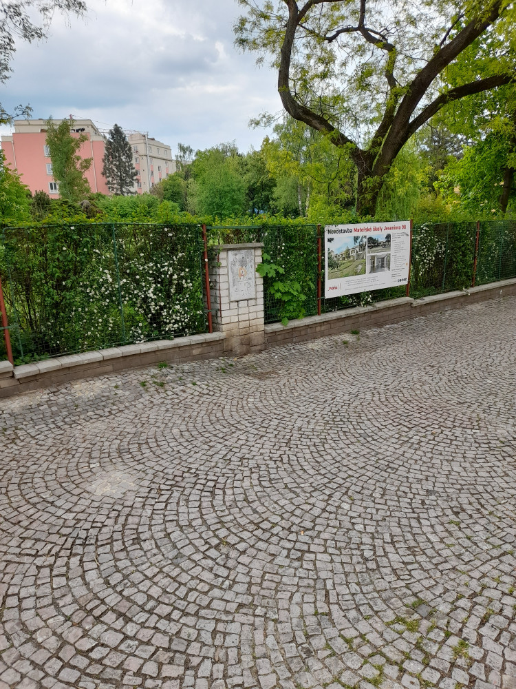 Odložený vrch postele u plotu bývalé mateřské školy ulice Jeseniova 96 roh Jeseniova a Ambrožova Praha 3 Žižkov