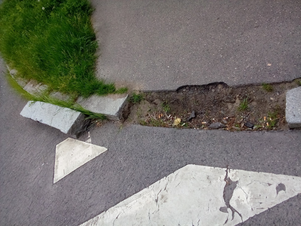 Poškozený obrubník. hlásila jsem před dvěma měsíci, stále nedošlo k nápravě. prosím o informaci, v jakém časovém horizontu bude opraveno. jedná se o příjezdovou cestu k benzínce. přejít zde s kočárkem je skoro nemožné.