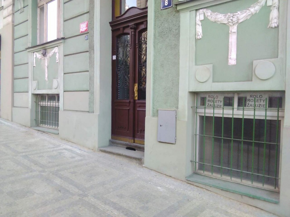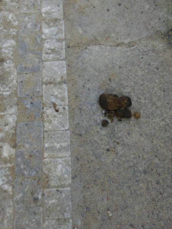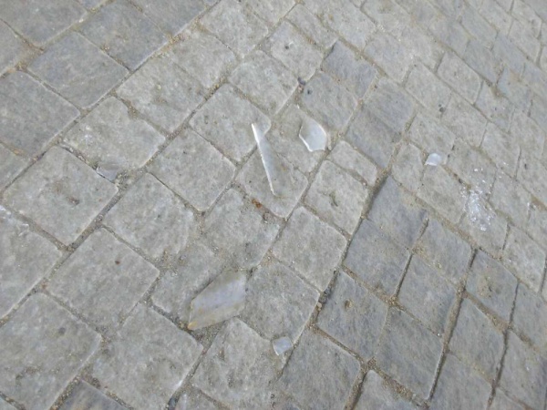 Pred domem vozova 8 je rozbite sklo + psi exkrementy v blizkosti tohoto mista.