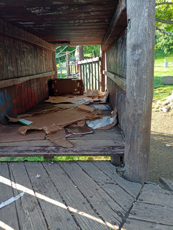 nepořádek na hřišti na Parukářce u nejdelší skluzavky