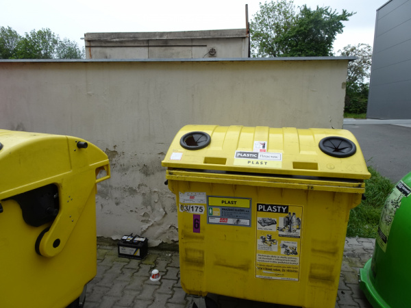 Nejaky dobytek vyhodil starou AUTOBATERII za kontejnery na Plast na Zverinove ulici.