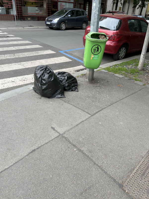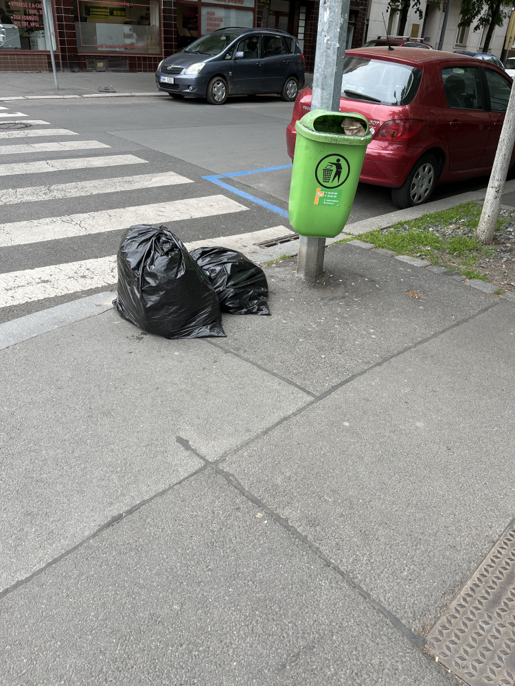Odložené dva pytle s odpadem u přechodu pro chodce