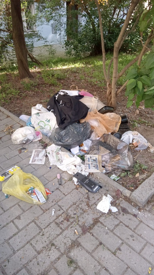 skládka před vchodem do VB Radhostska, o víkendu tam má být akce Bleší trhy !!!