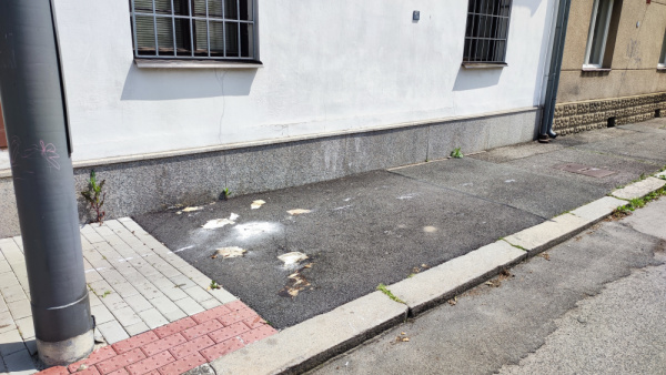Na ulici Za Vackovem naproti domu 9 nachodníku nahazene mokré odpadky.