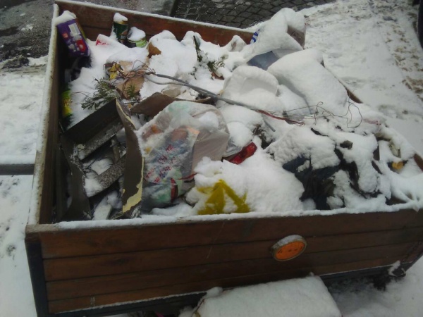 Plný vozík odpadků.