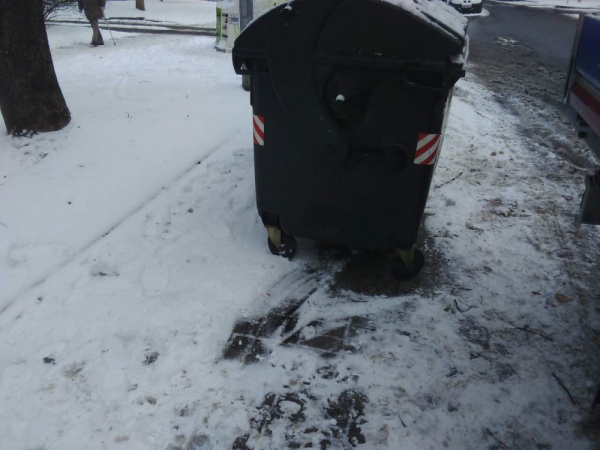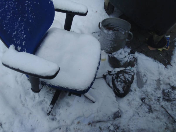 Nevím, jestli jezdíte i v tomto počasí, ale křesílko, starý hrnec a další hnusy u sběrných nádob jsou vidět i pod sněhem.