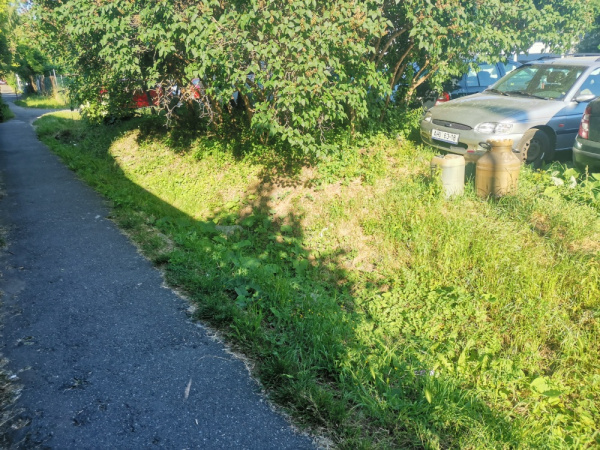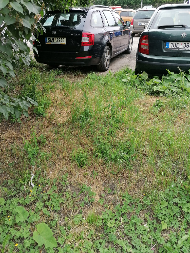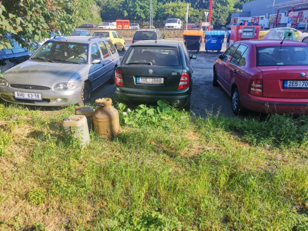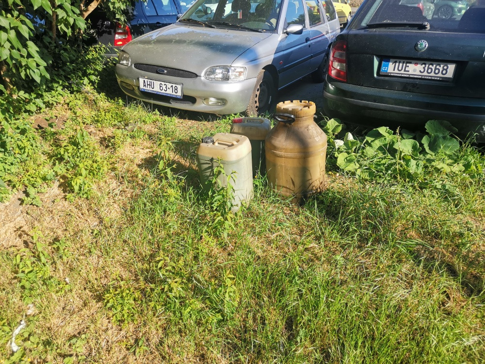 Jiz nekolik dni lezi v zeleni pobliz parkoviste u krizeni ulic Malesicka a Za Vackovem tyto tri barely, jeden prazdny, dva plne, tezko rict ceho, smrdi po oleji.
